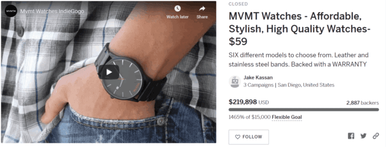 Crowdfunding isn’t a social media per se, but it’s an important channel in MVMT’s story and the way it happened is important both in the early success of the company, but also in the way they handled other social media platforms later on.