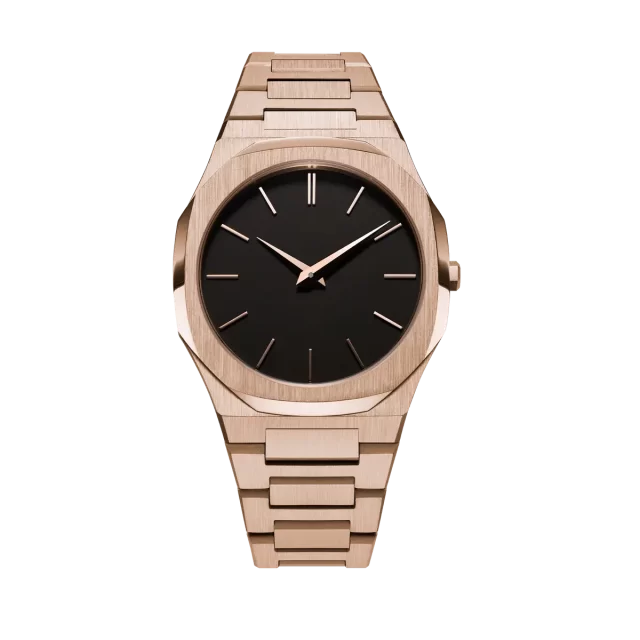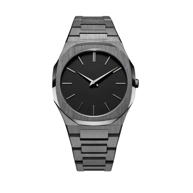 A minimalist and luxury watch design. This watch is with a octagon bezel which is brushed and polised. The band is brushed and tapered. A comfortable butterfly clasp to make the watch more luxury.