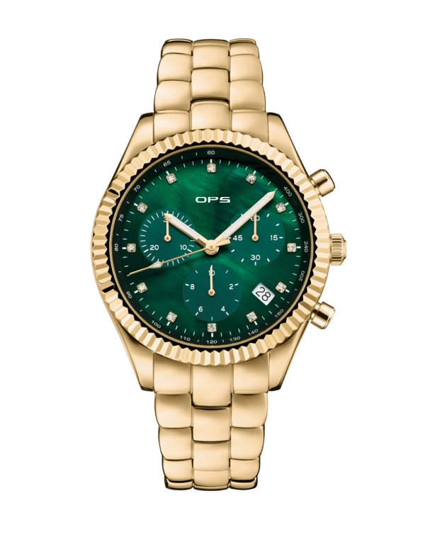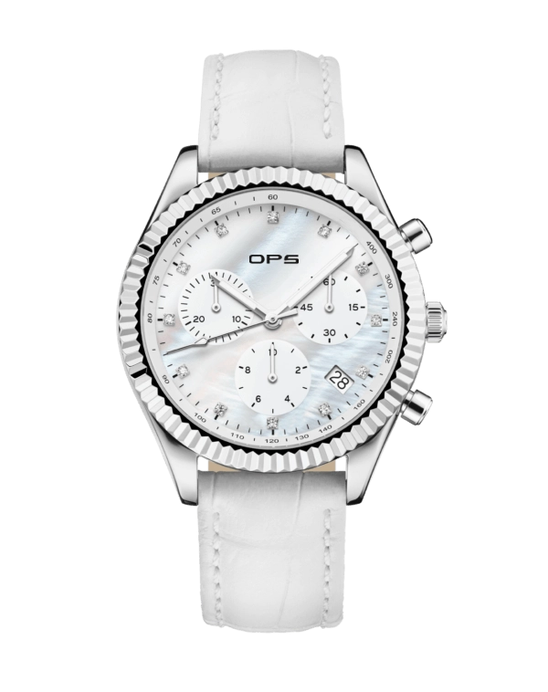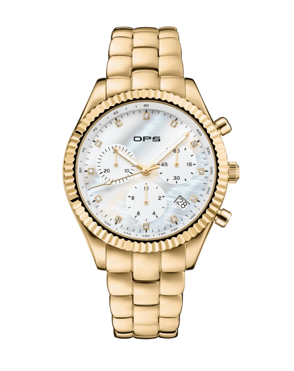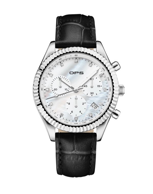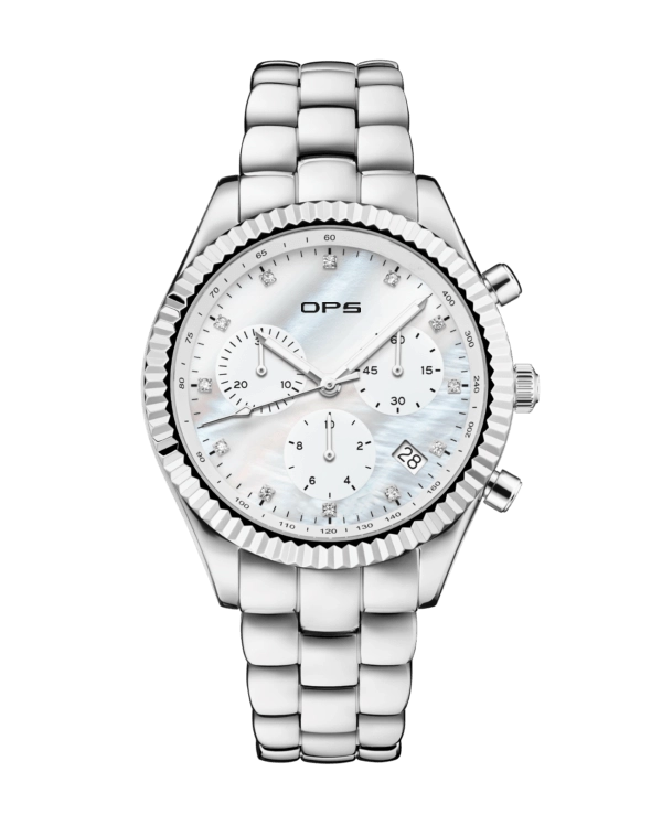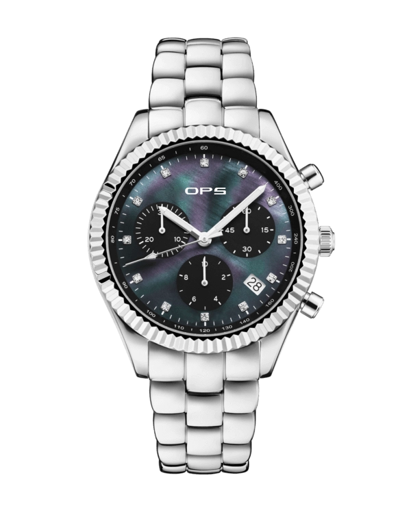 This elegant chronograph watch for women features a shimmering mother-of-pearl dial, housed in a sleek stainless steel case with sapphire glass. Its precise Swiss chronograph movement ensures reliability, while the 50M water resistance adds practicality. Combining timeless design with modern functionality, this watch is a perfect blend of sophistication and style, ideal for the fashion-conscious individual.